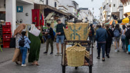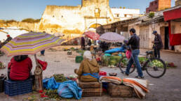 - After lunch, you’ll cross the Bou Regreg River by traditional wooden rowboat, or flouka Rabat. Your Open Doors Morocco local host will meet you at the boat and accompany you through the Rabat portion of your day. Depending on your interests, you may explore the Kasbah of the Udayas, walk along the waterfront, or visit iconic landmarks like the Hassan Tower and the Mausoleum of Mohammed V.
