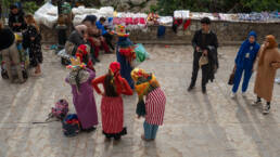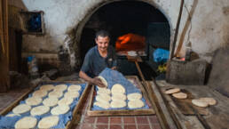 Everyday Life: children walking to and from school, families shopping, elders chatting in doorways, women taking bread to the traditional communal oven, etc.